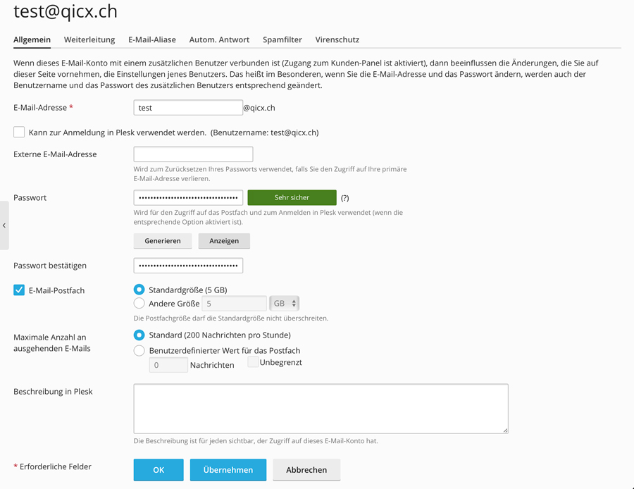 - Im Controlpanel Plesk des Inhabers der E-Mail Adresse (Login mittels E-Mail Adresse).